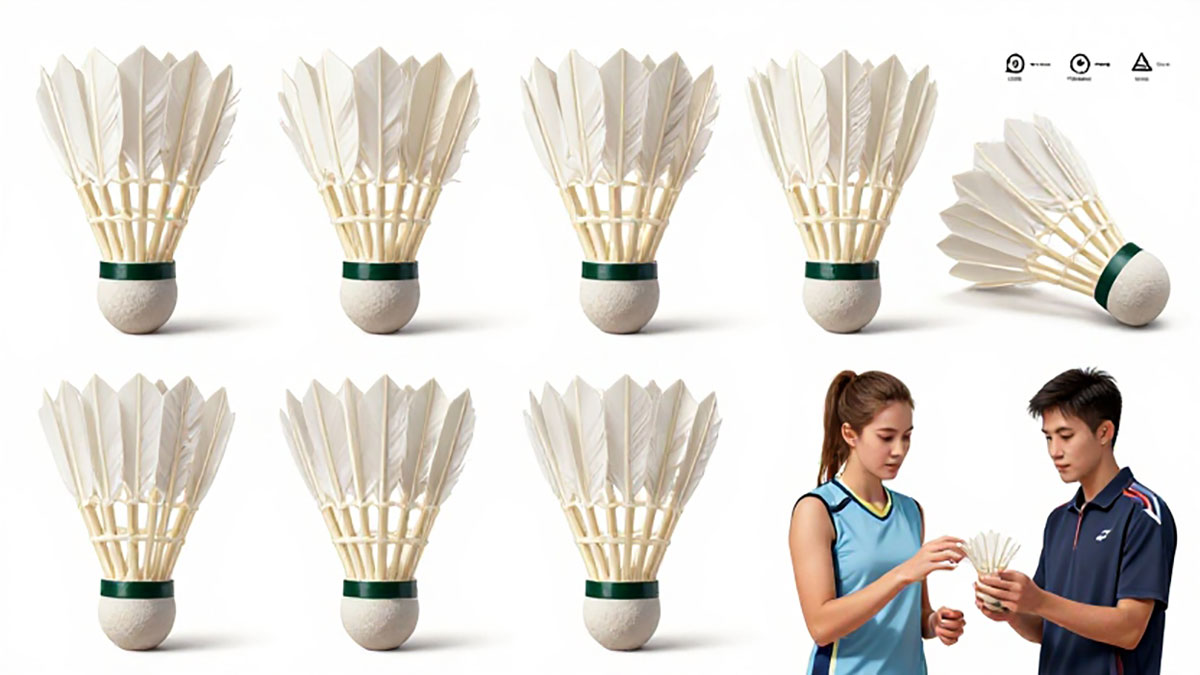 Shuttlecock badminton yang berkualitas dapat dikenali dari beberapa ciri penting. Pada shuttlecock bulu, perhatikan susunan bulu yang rapi, lurus, dan memiliki warna cerah alami. Bulu yang mudah rontok atau bengkok biasanya menandakan kualitas rendah. Bagian gabus juga harus padat dan tidak mudah penyok ketika ditekan ringan.