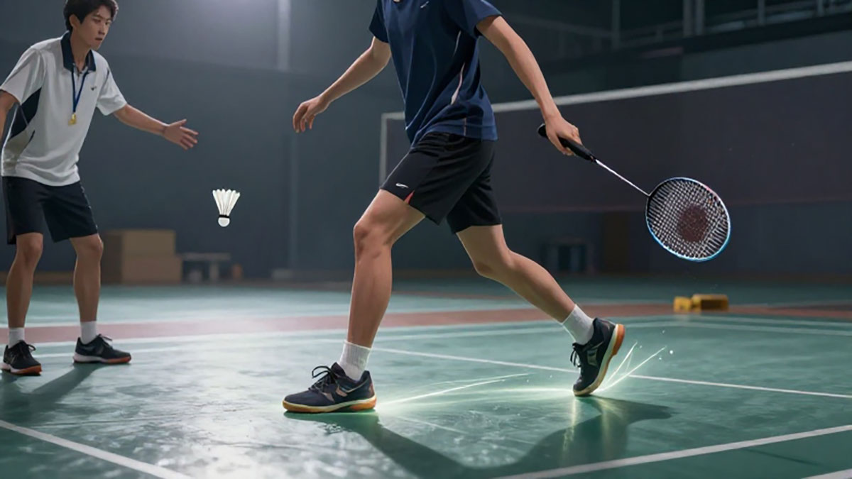 Pemilihan sepatu yang sesuai sangat krusial saat bermain di lapangan licin. Sepatu badminton dengan sol karet non-marking yang memiliki grip kuat akan membantu mengurangi risiko tergelincir. Hindari sepatu yang sudah aus karena daya cengkeramnya berkurang. Beberapa pemain juga memilih menambahkan grip tambahan pada bagian sol sepatu untuk meningkatkan stabilitas saat bergerak cepat dan melakukan pivot.